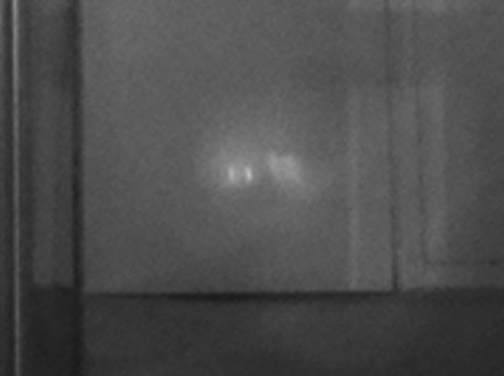 ORB COUPLE (below): A sequence of images appearing to show orbs with glowing eyes. Shot on a full spectrum stills camera, the orbs are described as ‘…entering the front room, observing inquisitively for a couple of minutes before leaving the room again.’ What is also interesting is that the softer orb seemed to stick very close to the brighter one suggesting perhaps that they were a couple of some kind? One thing’s for sure, we are not looking at insects or dust here… Photographer: Nicole A