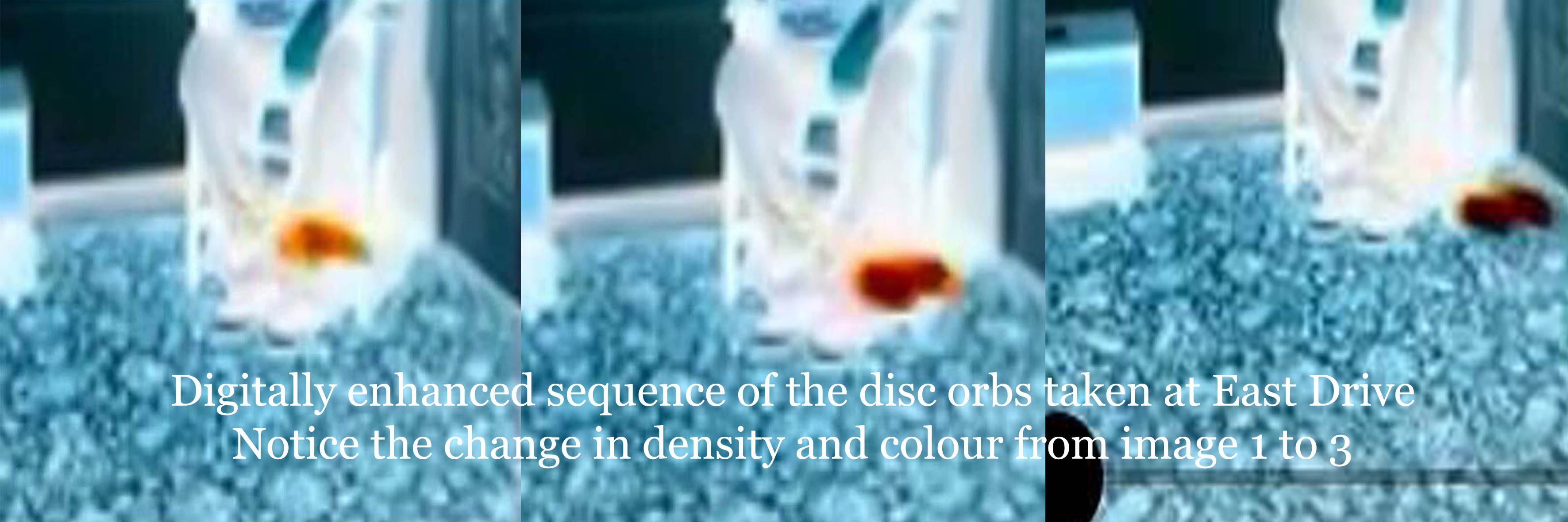 WORLD’S FIRST ‘DISC ORB’ (below): This sequence shows an object passing the camera like like a tiny flying saucer. To our knowledge nothing like this has ever been seen or captured captured on video at a paranormal location before (enhanced image). Photographer: Steve H